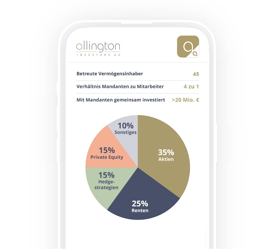 Als erfahrenes Team beraten wir seit mehr als zwei Jahrzehnten mit großer Leidenschaft Vermögensinhaber. 2017 haben wir Allington gegründet, um noch unabhängiger, fokussierter und effizienter auf die Bedürfnisse unserer Mandanten einzugehen. Wir sind frei von Konzernstrukturen und tragen die volle Verantwortung für die Leistungen unseres Unternehmens.